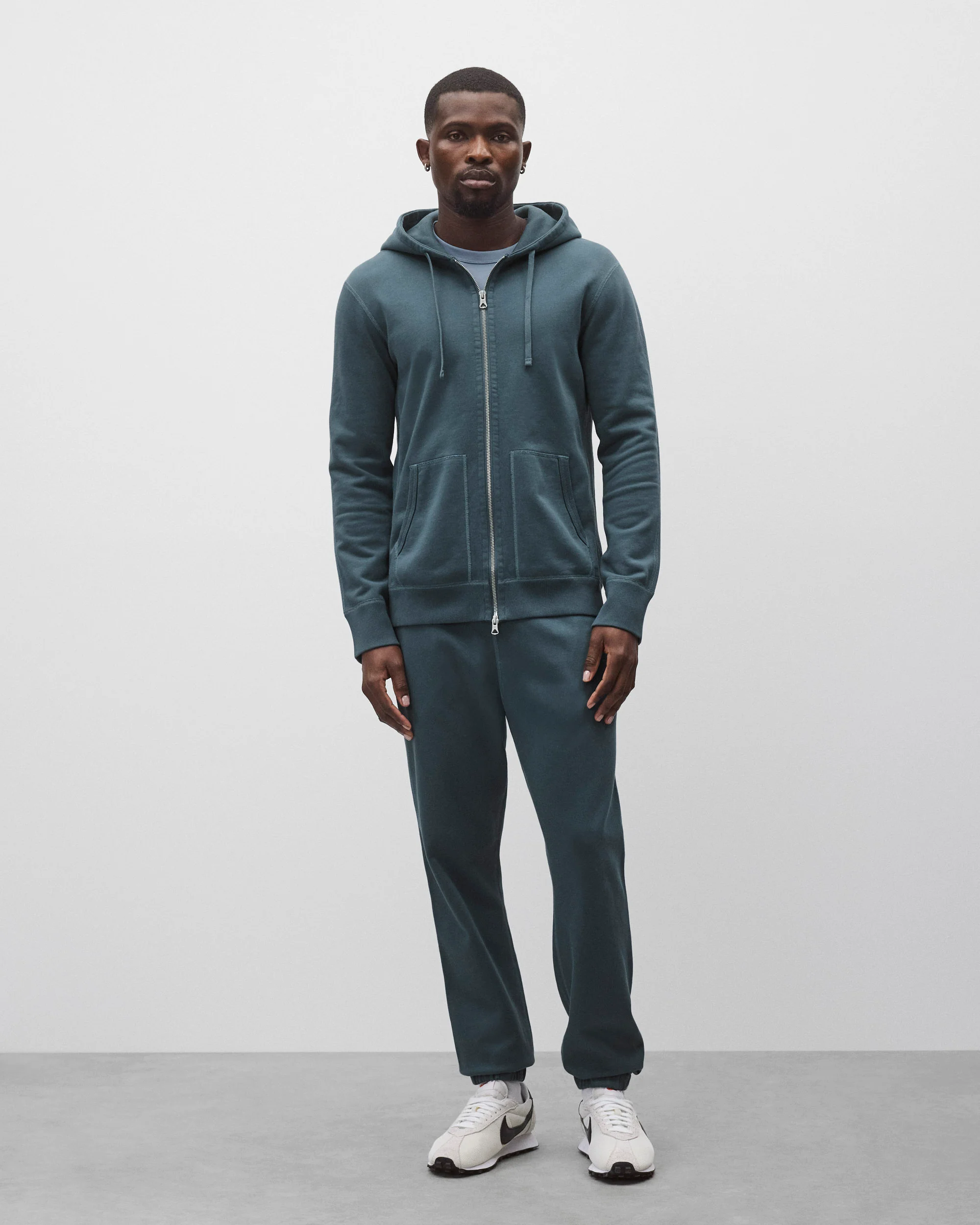 Our signature zip hoodie is made from premium Midweight Terry for an ideal balance of comfort and structure. Designed with a trim athletic fit, a dual-layer hood, semi-raglan sleeves, a heavy gauge two-way YKK zipper, a rib-bound front pocket, premium rib, and signature flatlock construction.